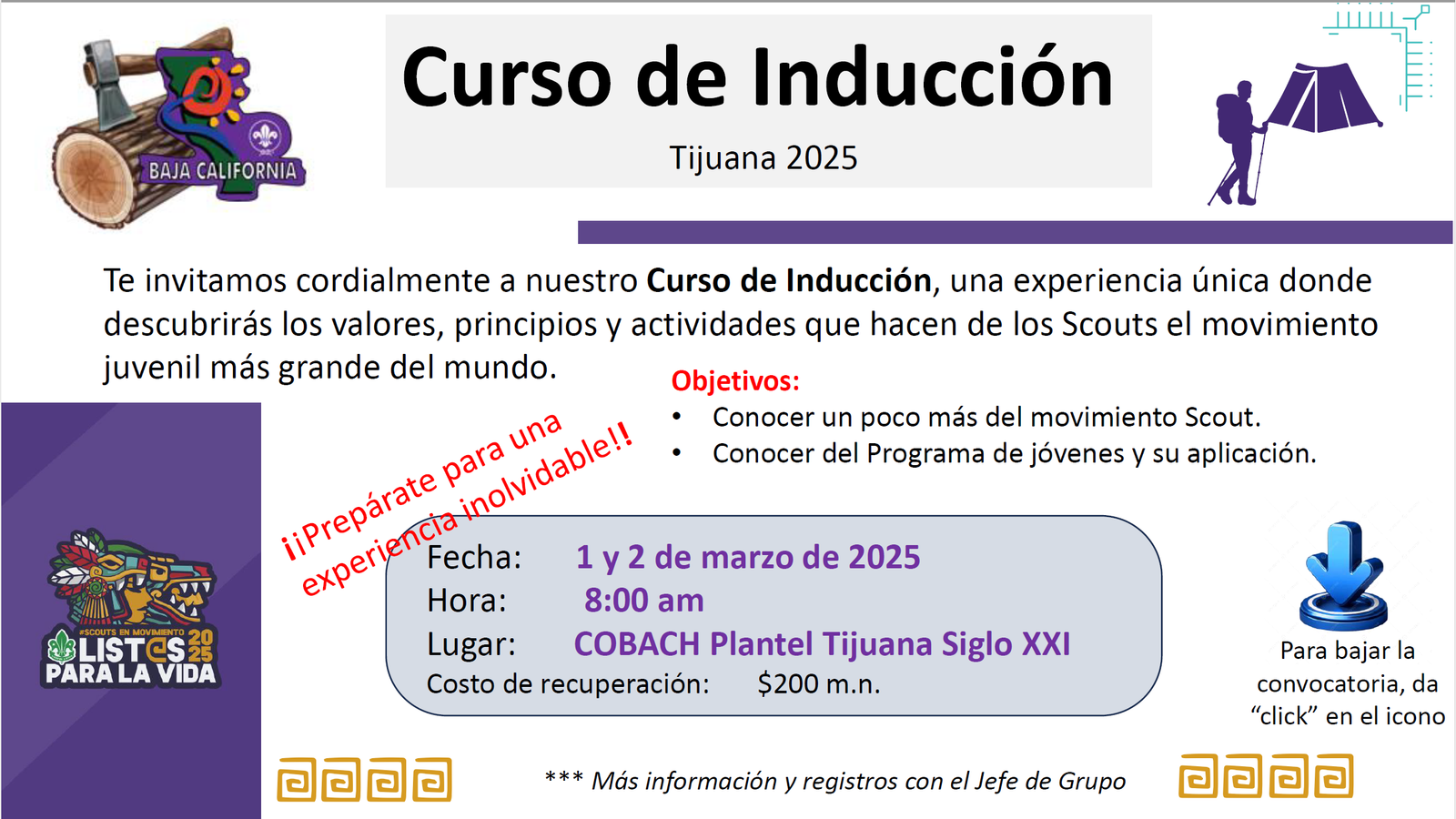 Madres y padres, público en general que deseen conocer más de cerca el movimiento Scout, así como scouters, dirigentes, rovers con cargo registrados (ASMAC1) que desean iniciar su proceso de formación básica.